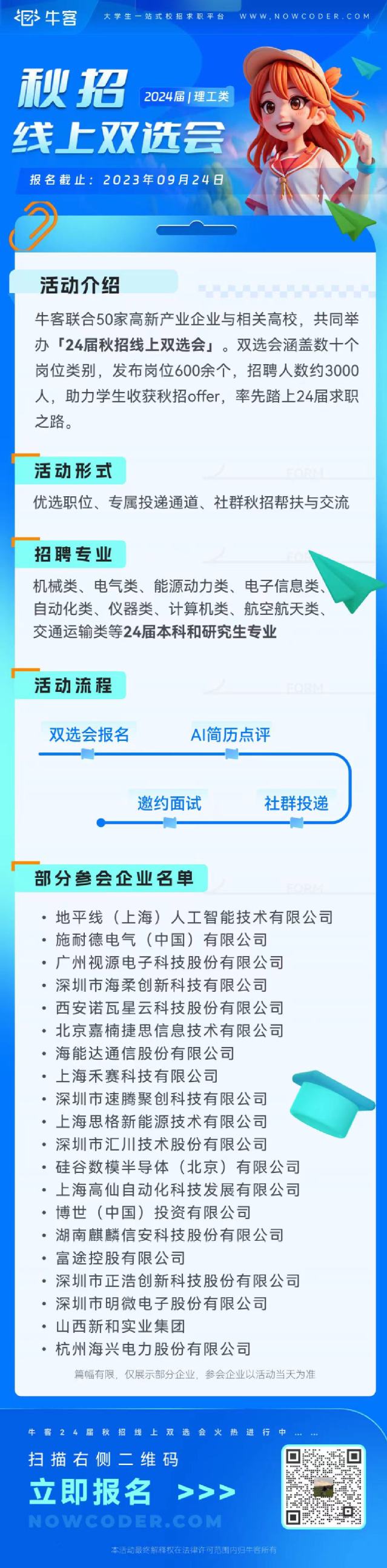 牛客联合50家高新产业公司,特别策划【24届秋招线上双选会】,报名入口现已开放!