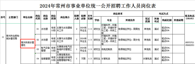 常州市排水管理处事业单位统一招考相关信息