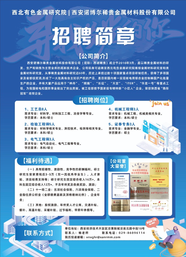 西安诺博尔稀贵金属材料股份有限公司2024招聘