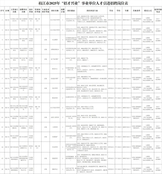 本次引才计划涉及8个部门15家事业单位16个岗位20人。具体岗位详见《枝江市2025年“招才兴业”事业单位人才引进招聘岗位表》(附件,以下简称《岗位表》)